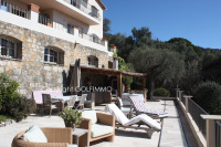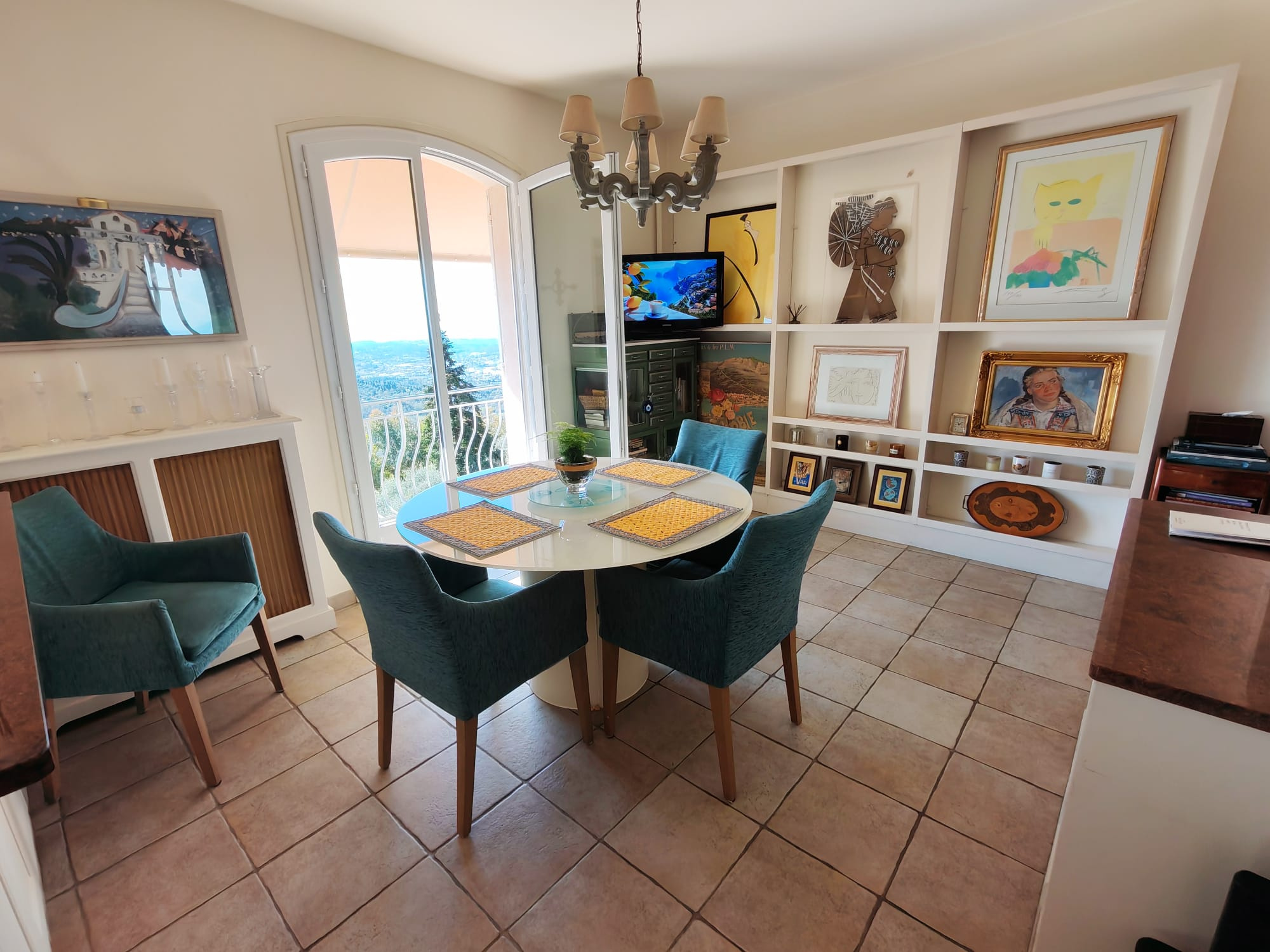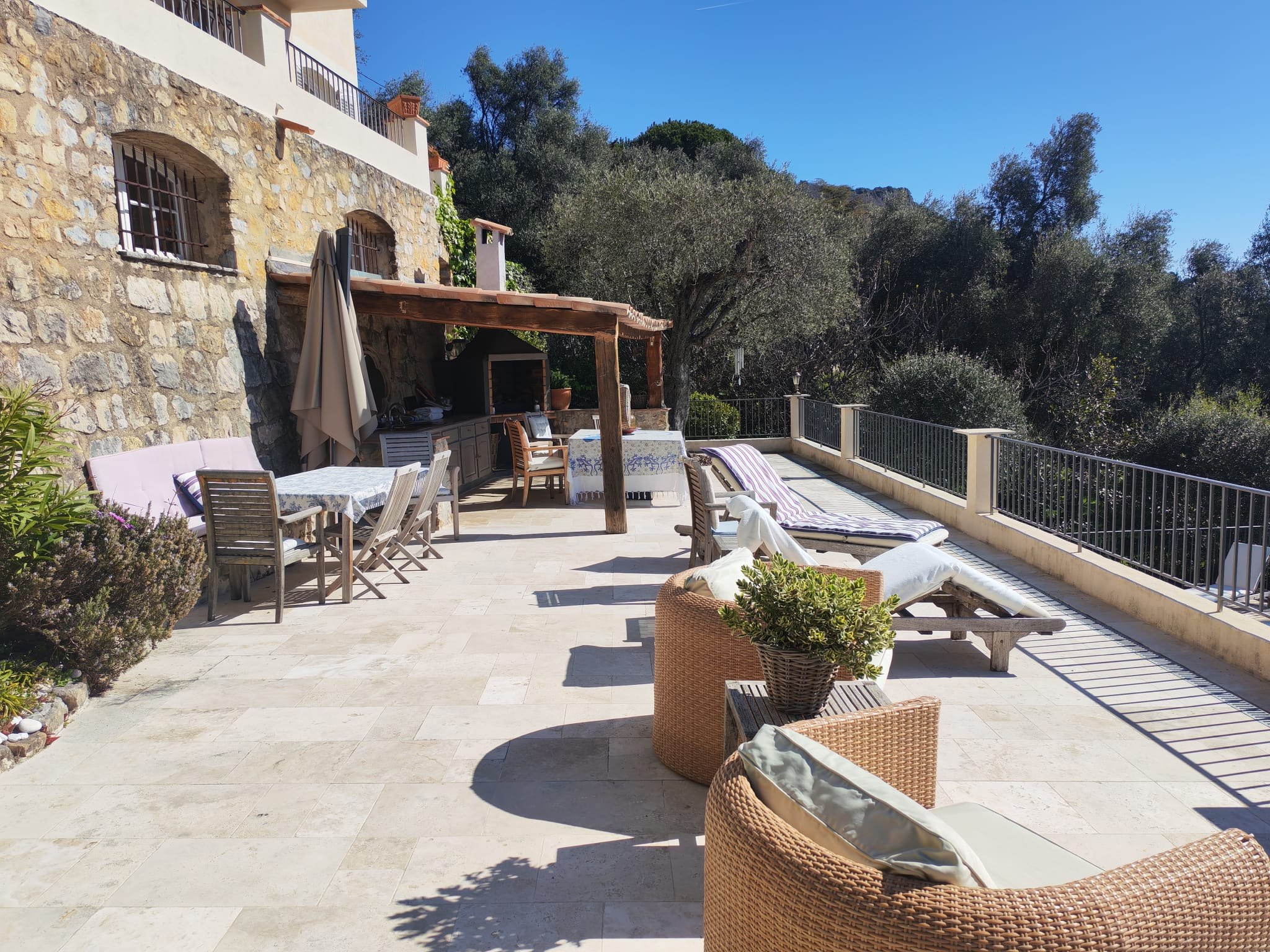 Villa individuelle d’environ 195 m² située à Magagnosc, implantée sur un terrain de 1 910 m², bénéficiant d’une vue mer panoramique et dégagée sur les collines environnantes, sans vis-à-vis. Le rez-de-chaussée propose un espace de vie lumineux et ouvert, comprenant un salon d’environ 46 m², une salle à manger et une cuisine, le tout prolongé par une terrasse exposée sud d’environ 17 m², offrant une continuité vers l’extérieur et le paysage. L’espace nuit se répartit sur deux niveaux avec quatre chambres, dont une chambre principale d’environ 27 m² avec dressing, ainsi que plusieurs pièces d’eau. Une partie indépendante, aménagée en appartement, permet d’envisager un espace d’accueil, locatif ou pour une utilisation autonome. Le bien présente le charme de l’ancien avec des éléments traditionnels conservés, associé à un entretien soigné assurant un très bon état général. Le terrain paysager accueille de nombreuses essences méditerranéennes, dont environ 19 oliviers, ainsi que des palmiers, figuiers, orangers et citronniers. Les extérieurs sont complétés par plusieurs terrasses, une piscine et une cuisine d’été, dans un environnement résidentiel calme à proximité des commodités.
